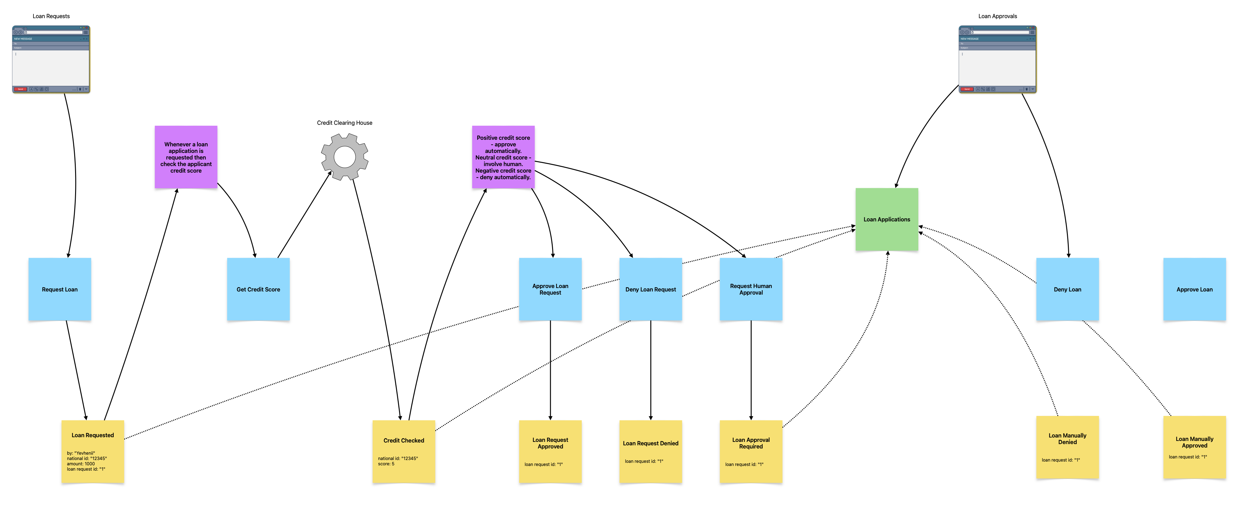 For this tutorial, we will implement a loan processing system as presented by Tony Young in his webinar ‘An end-to-end example with EventStoreDB’ . It covers the following requirements: